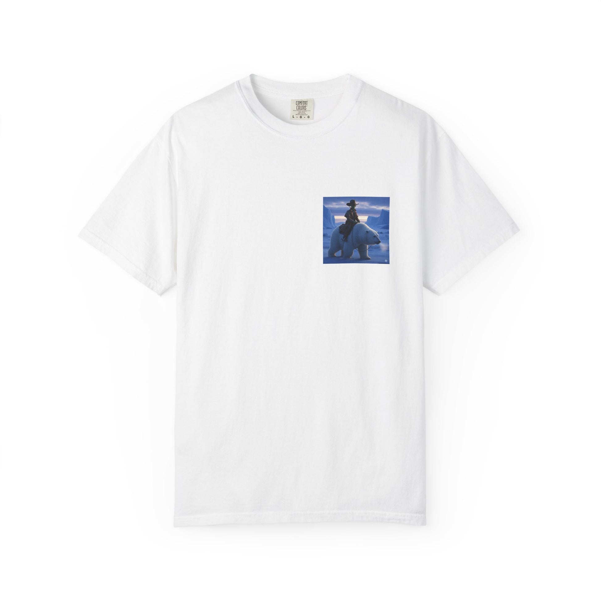 A unisex garment-dyed T-shirt featuring a design of a lone space cowboy. This shirt offers long-lasting comfort with its quality ring-spun US cotton fabric. The relaxed fit and classic crew neckline make it perfect for casual wear and accessorizing. Ideal for adults looking for a unique and stylish tee for everyday wear or sci-fi fans celebrating Space Exploration Day.
